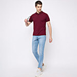 Club York Regular Fit Printed Polo T-Shirt - Maroon, 1 pc (Size - XL)