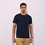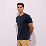 Hoversoul 100% Cotton Solid Round Neck Regular Fit T-Shirt - Navy Blue