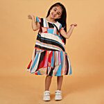 Creative Kid's Girls Blue Printed Casual Dress, 1 pc (6-7 Years)