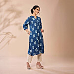 Daali Navy Cotton Regular Fit Printed Kurtas, 1 pc (Size - XL)