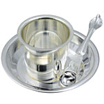 Ojas silver-plated Taman Palli Panchapatra set is perfect for gifting, return gifting, occasional gifting, utility gifting, and festive celebrations. Made from stainless steel with a silver-plated finish, it showcases antique designs that add a traditional charm. Highly durable and elegantly crafted, this set makes a wonderful addition to your home décor, ideal for enhancing rituals and special occasions with a touch of cultural elegance.
