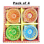 Mangal Bhavan Designer Clay Diyas - Multicolour, 4 pcs