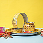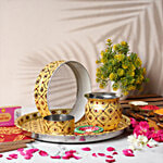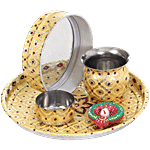 Mangal Bhavan Karwa Chauth Yellow Pooja Thali Set, 6 pcs