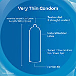 Crafted from natural rubber latex, these transparent, lubricated condoms are ultra-thin for a natural feel, featuring a teat-ended, straight-walled design. With a nominal width of 53 ± 2mm and a minimum length of 180mm, they serve as a reliable mechanical contraceptive for single use. While effective, they do not provide absolute protection against pregnancy, HIV, or other sexually transmitted infections. Store safely away from children.