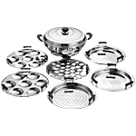 Kitchen Essentials Stainless Steel Multi Kadai With Idli, Dhokla & Steamer Plates - Induction Base, 4.25 L (Set of 7)