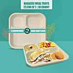 Eco Soul 3 Compartment Square Disposable Meal Tray/Plates, 10 pcs