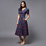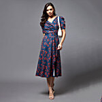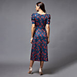 Miss Chase Multicoloured Base Teal Polyester Floral Wrap Midi Dress, 1 pc (Size - 28)
