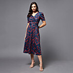 Miss Chase Multicoloured Base Teal Polyester Floral Wrap Midi Dress, 1 pc (Size - 30)