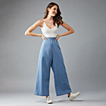 Step into style with the Miss Chase Blue High Rise Flared Wide Leg Jeans. Crafted from a lightweight blend of 69% cotton, 29% polyester, and 2% elastane, these jeans feature a clean-look solid design. The high-rise waist and flared wide fit create a flattering, retro-inspired silhouette, perfect for women seeking chic comfort. Equipped with two patch pockets and a button and zip closure, they offer both functionality and fashion. Ideal for casual or trendy outfits, this package includes one pair of jeans, blending timeless elegance with modern flair.