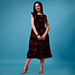 No Question askedFashion2wear Women Floral Printed Fit & Flared Midi Dress - Black