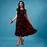 Fashion2wear Women Floral Printed Fit & Flared Midi Dress - Black