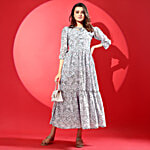Fashion2wear Women Tie-Up Neck Georgette Fit & Flare Midi Dress - Grey, 1 pc (Size - XXL)