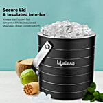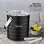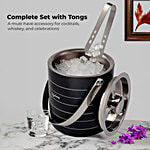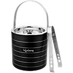 Lifelong Stainless Steel Double Wall Ice Bucket With Tong - Gun Metal Ring Design, 1.5 L