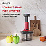 Lifelong Compact Push Chopper - Stainless Steel Blades, 650 ml