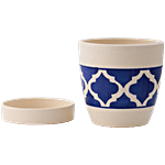 Handcrafted Small Planter with Tray – Moroccan Charm Bloom brings artistry and function together. Hand-painted with intricate Moroccan-inspired patterns, this ceramic planter adds elegance to your home décor. Perfect for small plants or succulents, it comes with a matching tray, ensuring both beauty and convenience. A charming addition or thoughtful gift.