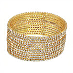 The Aatmana Gold-Plated CZ-Studded Bangles blend timeless elegance with modern charm. Adorned with sparkling stones, they add a graceful sparkle to any look. Designed with a convenient slip-on closure, these versatile bangles are perfect for daily wear or festive occasions.