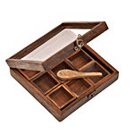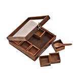 No Question askedSanjeev Kapoor by OGGN Mango Wooden 9 Compartment Masala Box With Transparent Lid