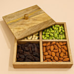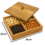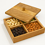 Sanjeev Kapoor by OGGN Mango Wooden 4 Compartment Dry Fruit Box With Lid, 1 pc