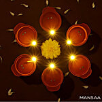 Mansaa Water Sensor Terracotta Coloured LED Plastic Diya Lights, 6 pcs
