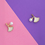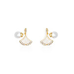 No Question askedJewelz Pearl & Fan Motif Stud Earrings