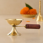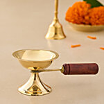 Daivya Sparsh by bigbasket Brass Pooja Dhoop Dani/ Camphor Holder With Wooden Handle, 1 pc