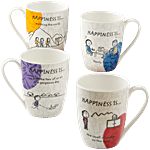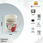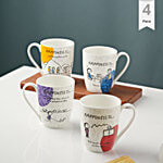 Clay Craft Fine Ceramic Happiness Is Oxford Delight Coffee & Milk Mugs - Multicolour, 300 ml (Set of 4)