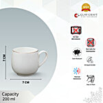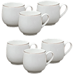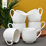Clay Craft Fine Ceramic Gold Printed Coffee/Teacups - Twig Imp, 200 ml (Set of 6)