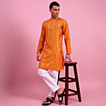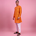 Eternal Two Tone Silk Embroidered Saffron Kurta, 1 pc (Size - XL)