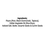 Flours (Rice, Black Gram (Urad), Tapioca), Edible Vegetable Oil (Rice Bran), Iodised Salt, Butter, Sesame Seeds, Cumin Seeds.