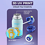 Pexpo Poggo Stainless Steel Sipper Water Bottle For Kids - Bear UV Printed Design
