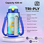 Pexpo Poggo Stainless Steel Sipper Water Bottle For Kids - Bear UV Printed Design, 420 ml