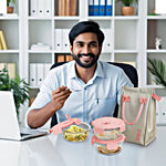 Treo Lumino Fresh Square Borosilicate Glass Lunch Boxes With Lunch Bag, 320 ml (Set of 3)