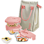 Treo Lumino Fresh Square Borosilicate Glass Lunch Boxes With Lunch Bag