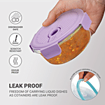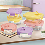 Treo by Milton Lumino Fresh Glass Round Tiffin Box are crafted from high-grade borosilicate glass, ensuring exceptional durability and versatility. Safe for use in both microwave and conventional ovens (without the lid), these containers are temperature resistant from -40°C to +400°C. Their leak-proof design allows you to carry liquid dishes with confidence. The 100% food-safe, non-porous glass won’t absorb stains or odours, preserving the purity and taste of your food. Each container features an air vent knob to release steam, making reheating meals effortless. They are also fridge, freezer, and top-rack dishwasher safe for added convenience. The set comes with an insulated jacket that is machine washable, enhancing portability and ease of use. Ideal for meal prep, lunch boxes, baking, and food storage, these stackable containers offer efficient storage solutions for various needs. Their durability and resistance to odours and stains make them a great choice for maintaining food freshness while being environmentally friendly.