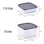 Joyo Fresherware Square Storage Containers - Grey, 2 pcs (1.5 L, 3 L)