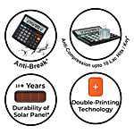 Equipped with a wide range of features, this 12-digit calculator offers dedicated TAX+ and TAX– keys for seamless tax computations, GT, MRC, M+, M–, square root, and percentage functions, along with on-screen operation symbols for quick verification and correction of entries. Its durable ABS plastic construction combines strength with portability, while the anti-break technology provides protection against accidental drops. The efficient dual power system includes an auto-off function after eight minutes of inactivity to conserve energy. Backed by a 3-year warranty, this professional calculator ensures reliable performance for everyday office, academic, or financial use.