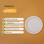 Made from natural fibre pulp, Classi Bio 10'' (25 cm) Plain Round Plate offers a guilt-free, sustainable alternative to plastics/polymers/ paper. Its non-toxic property makes it safe for food contact. It is suitable for use in refrigerators and microwaves (reheating). Capable of handling wet and oily dishes, it is perfect for corporate events, parties, and catering services. It offers a convenient and elegant way for serving mini meals & buffet portions