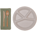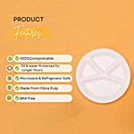 Made from natural fibre pulp, Classi Bio 12" (29.50 cm Diameter) 4 Compartment Super Buffet Plate offers a guilt-free, sustainable alternative to plastics/polymers/ paper. Its non-toxic property makes it safe for food contact. It is suitable for use in refrigerators and microwaves (reheating). Capable of handling wet and oily dishes.Ideal for serving individual meals with multiple food items. The compartments help separate different foods, keeping them neat and preventing flavours from mixing