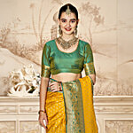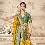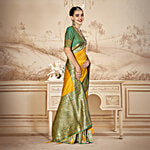The Eternal Mustard Yellow Kanjivaram Style Saree exudes traditional charm with its rich hue and elegant woven detailing. Crafted from premium fabric, it drapes beautifully, offering a graceful silhouette for festive and special occasions. Measuring 6.30 metres, this saree blends timeless design with modern sophistication, making it a perfect addition to your ethnic wardrobe.