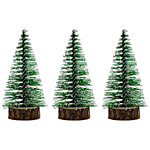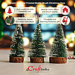 eCraftIndia Artificial Frosted Bottle Brush Christmas Tree Wooden Base - 10.5 cm, Green, 3 pcs
