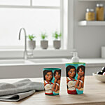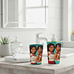 Gluman Moana 3D In-Mould Label Soap Dispenser With Toothbrush Holder, 2 pcs (Dispenser & Toothbrush Holder- 350 ml)