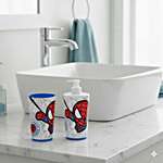 Gluman Spiderman 3D In-Mould Label Soap Dispenser With Toothbrush Holder, 2 pcs (Dispenser & Toothbrush Holder- 350 ml)