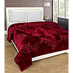 JBG Home Store Mink Floral Pattern Embossed Double Blanket - Maroon, 300 GSM, 220 x 215 cm, 1 pc
