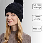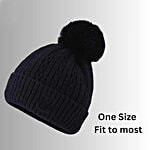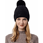 Pearlfiesta Woollen Cap - With Pompom, Black, 1 pc