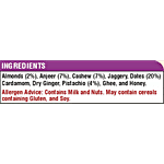 Almonds (2%), Anjeer (7%), Cashew (7%), Jaggery, Dates (20%), Cardamom, Dry Ginger, Pistachio (4%), Ghee, and Honey.