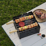 Lifelong Portable Charcoal Barbecue Grill & 2 Skewers With Wooden Handle, 1 Set