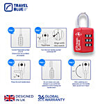 No Question askedTravel Blue London. Since 1987 TSA Combination Lock - Red