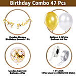 Party Propz Happy Birthday Decoration Set - Golden & White, 47 pcs
