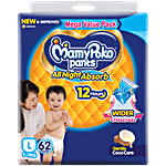 Mamypoko All Night Absorb Disposable Baby Diaper - L, Ideal For 9-14 kg, 62 pcs