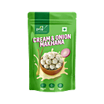 Foxnut (60%), Refined Rice Bran Oil, Spices & Condiments (Yellow Chilli, Onion Powder (2%), Parsley Leaves), Iodized Salt, Sugar, Milk Solids (3.5%), Maltodextrin, Hydrolysed Peanut Protein, Acidity Regulator (INS 296), Flavour Enhancer (INS 635), and Natural and Nature-Identical (Cream & Onion) Flavouring Substances.